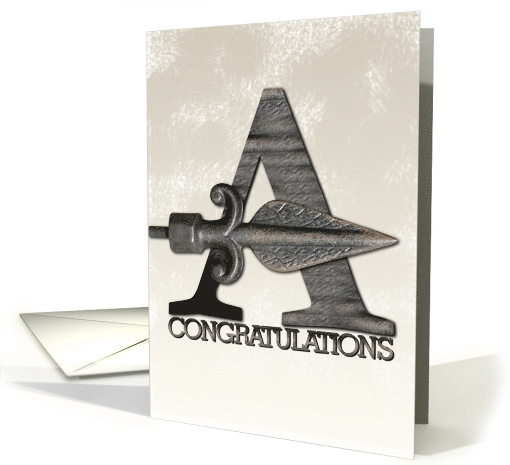 | Artist Notes: | Rendered wrought iron metal texture arrow that creates an "A Congratulations" card for obtaining straight As on report card. |