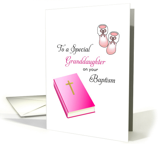 | Title: | For Granddaughter Baptism Card-Bible, Cross and Baby Booties |