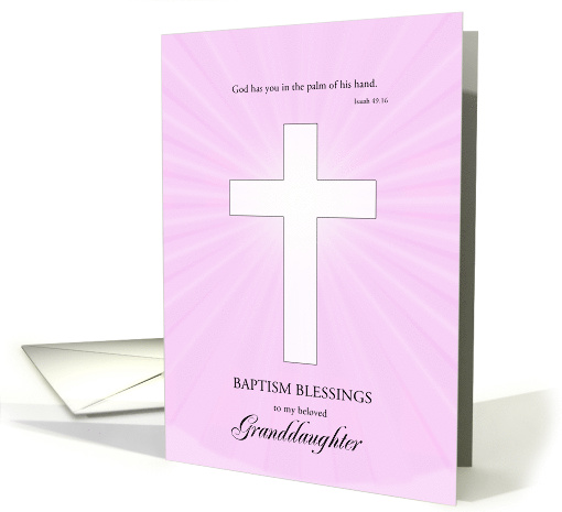| Artist Notes: | A lovely Baptism congratulations card for your granddaughter. Send your love and best wishes on the day of your granddaughter's baptism with a lovely pink card and a glowing cross. |
