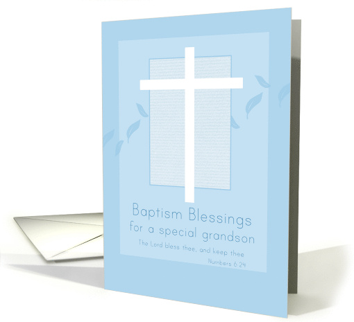 | Title: | Baptism Blessings Grandson White Cross Blue Leaves |