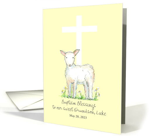| Title: | Baptism Congratulations Grandson Lamb Custom Name |