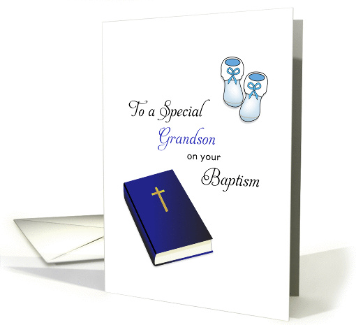 | Title: | For Grandson Baptism Card-Bible, Cross and Baby Booties |