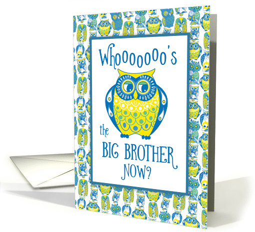 | Artist Notes: | WhoOO’s a big brother now? This cute card will remind the new big brother that he is a special part of the growing family. Celebrate with a little boy on the birth of his new baby brother or sister. |