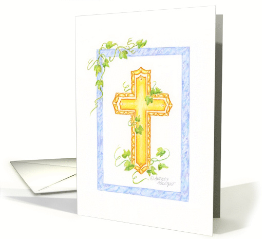 | Artist Notes: | Golden cross with ivy vine is special for a celebration of a First Holy Communion for a boy or man. Wishes of blessings and God's love for the future on this day. Inside Verse:Blessings on this special day. May God's love always be with you. Congratulations on your First Holy Communion! Original artwork and design by Audrey Ascenzo. ❤️ |