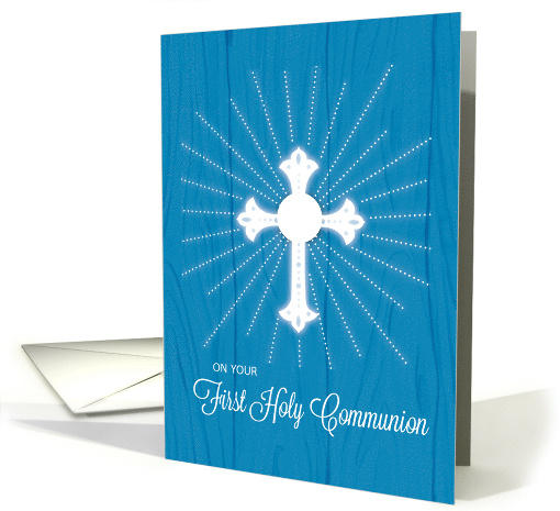 | Title: | First Communion Cross and Rays on Blue Wood |