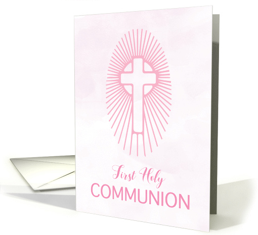 | Artist Notes: | Celebrate a First Holy Communion as you wish God’s blessings on a girl. Rays are reflecting the joy from the host at the center of the cross. The background is a sweet pink watercolor look, with a stronger pink for the cross and text. |