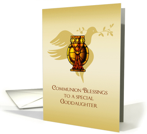 | Artist Notes: | Congratulate a special Goddaughter on their First Holy Communion. Design features symbolic gold chalice and Eucharist with gold dove. |