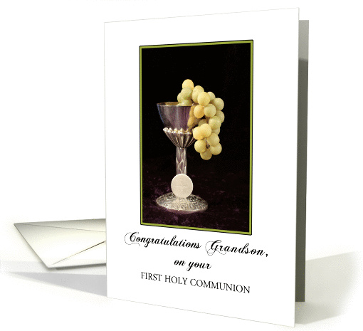 | Title: | For Grandson First Holy Communion Greeting Card-Chalice-Wafer & Grapes |