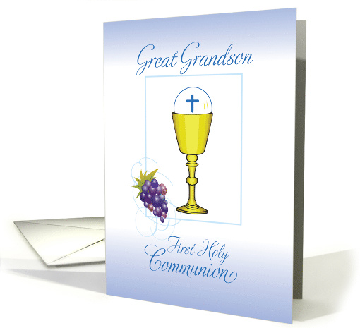 | Title: | Great Grandson First Communion Chalice with Host and Grapes on Blue |
