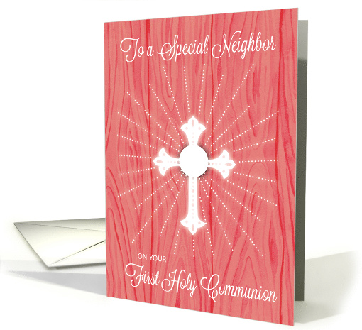 | Title: | Neighbor First Communion Cross and Rays on Pink Wood |