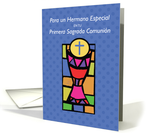 | Artist Notes: | This colorful card for a brother on his First Holy Communion is written in Spanish. Congratulate your brother on his Communion Day. The inside of the card is translated as,God bless you on your First Holy Communion and always. May you receive joy in your heart and love that never ends. |