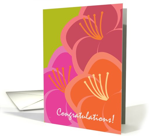 Engagement congratulations, with cheery, bright tropical flowers in orange and pink. Please feel free to add to, or change, the inside message to create your own special message.