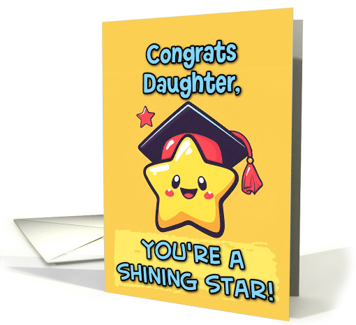 | Artist Notes: | A proud graduate kawaii cartoon star wearing a mortarboard on its head with a red tassle on a yellow background with the text "Congrats daughter, you're a shining star!" A fun card to send to that newly graduated daughter |