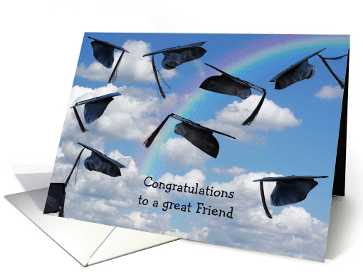 Friend's Graduation-graduation hats in sky with rainbow