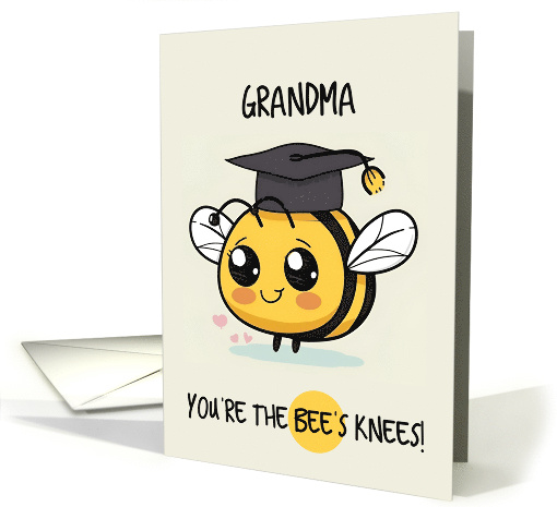 | Artist Notes: | A cute cartoon bee wearing a graduation cap with tassle - in a clean kawaii style with bold black outlines - on a beige background and the text "grandma you're the bee's knees!" A fun card to send to your newly graduated grandma |