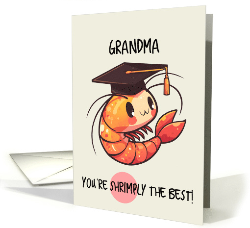 | Artist Notes: | A cute cartoon shrimp wearing a graduation cap with tassle - in a clean kawaii style with bold black outlines - on a beige background and the text "grandma you're shrimply the best!" A fun card to send to your newly graduated grandma |