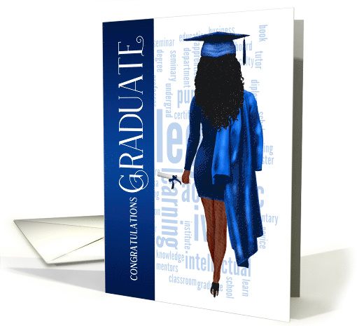 | Title: | Black Hair Blue Cap and Gown Graduate Congratulations |