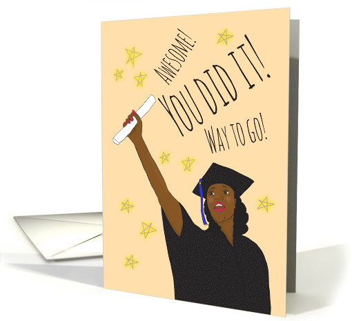 | Artist Notes: | Send this illustrated image of a very proud African American female holding a diploma to say Congratulations to the special grad in your life. |