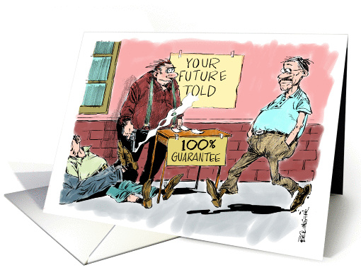 The black humor cartoon deals with truth in advertising. A very rare thing, that. There are few things come with a 100% guarantee but college graduation comes close to a guarantee of success. The inside verse is a congratulations to someone graduating college. Or cartoon school.