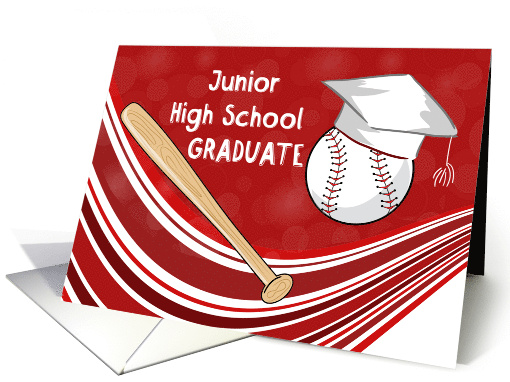 Title: | Junior High School Graduation Baseball Bat and Hat on Red |