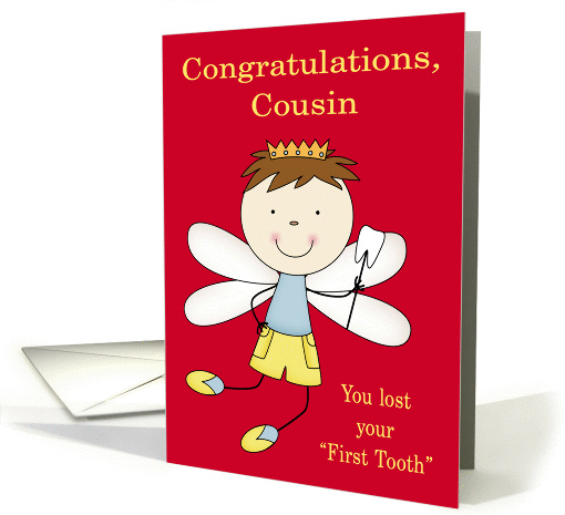 | Title: | Congratulations to Cousin, Losing first tooth, boy fairy with crown |