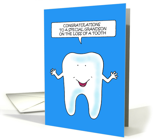 | Artist Notes: | A simple illustration of a smiling tooth saying 'Congratulations to a special grandson on the loss of a tooth'. The image is set against a bright blue coloured background. |