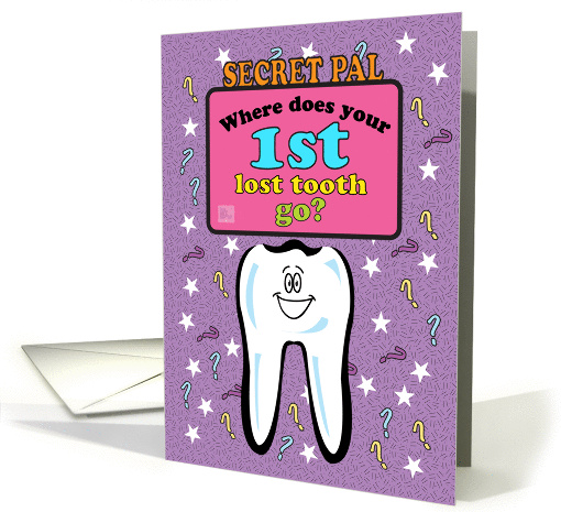 | Inside: | Because your tooth shines so bright, It's now a star in the night. Congratulations on losing your first tooth and good job on your brushing. From your Secret Pal |