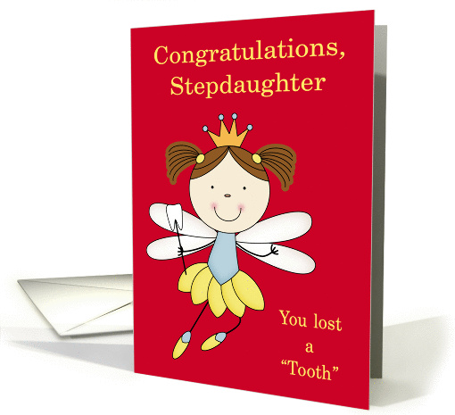 | Title: | Congratulations to Stepdaughter, Losing tooth, girl fairy, crown, red |