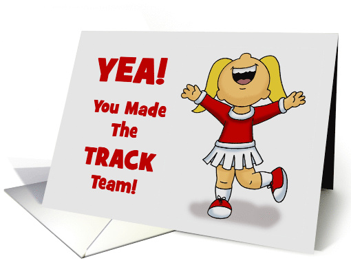 | Artist Notes: | Congratulations On Making The Track Team card with a cute little girl cheering and dancing. The words say, Yea! You made the track team!. Inside says, Congratulations! Knew you could do it! You've got what it takes! |
