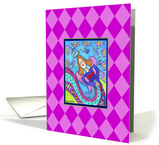 "The Keeper of the Nest" an original watercolor now available as a greeting card. The center image is scaled to print at approximately 2.5 by 3.5 inches. Card can be framed, or the center cut out to create an ACEO. An angel watches over the birds at night...a mother watches over her baby.