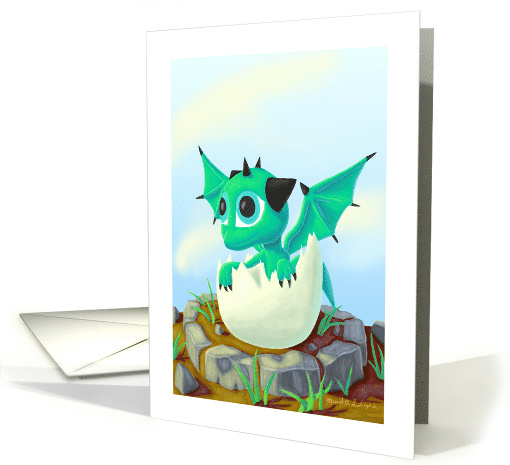 Congratulations on your new baby! A newly hatched dragon seeing the world for its first time on a bright and sunny day. Happy and excited, It can't wait to play in the sun. The colors of this digital painting are mostly warm, bright like the warm days of spring.