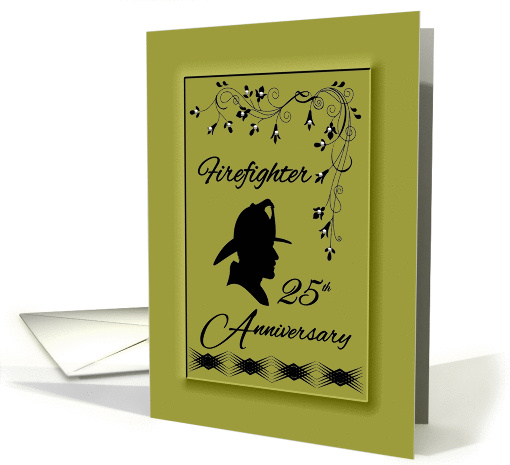 | Title: | Firefighter- 25th Anniversary - Flourish with Black Fireman Silhouette |