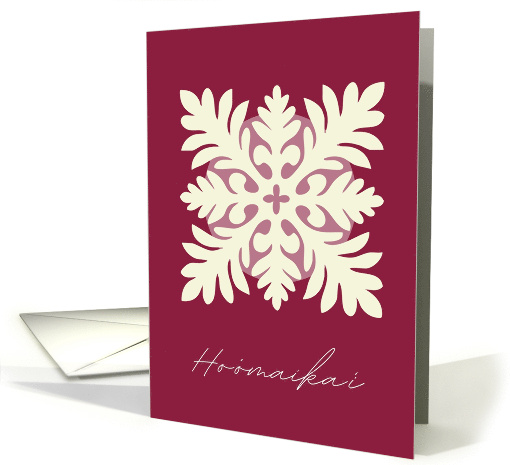 Send heartfelt aloha with our Ho‘omaika‘i Vibes card, featuring a stylish twist on a traditional Hawaiian quilt design. "Ho‘omaika‘i," the Hawaiian word for "Congratulations," is beautifully displayed on the cover, making it a meaningful way to honor graduations, weddings, promotions, or personal milestones. Inspired by the warmth and artistry of Hawaiian culture, this card blends timeless tradition with modern island flair. Blank inside for your personalized message. Perfect for sharing aloha across the miles or celebrating local pride.