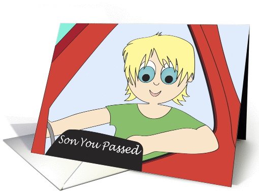 | Artist Notes: | A Bright New Driver card for a Special Son. This card shows a young man leaning out of a red car window, with a 'Son You Passed' Message on the mirror. |