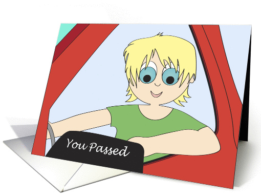 | Artist Notes: | A Bright New Driver card for a Special Someone. This card shows a young man leaning out of a red car window, with a 'You Passed' Message on the mirror. |