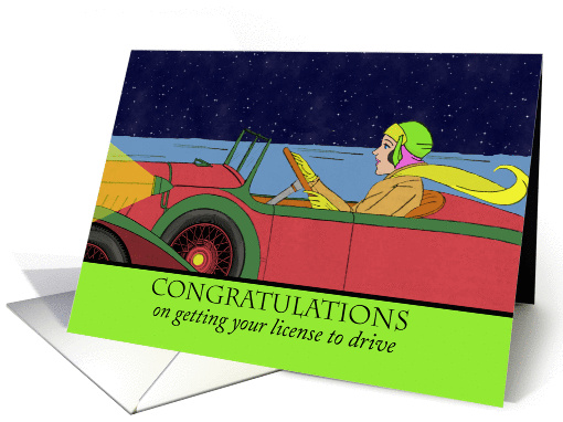 | Title: | Congratulations on Getting Driver's License, Woman and Retro Car |