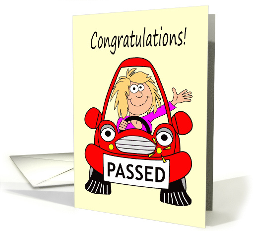 | Title: | Passed Driving Test Cartoon Caricature of a Woman in a Red Car |