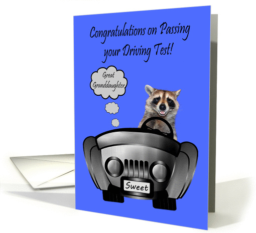 | Title: | Congratulations, Passing Driving Test, Great Granddaughter, Raccoon |