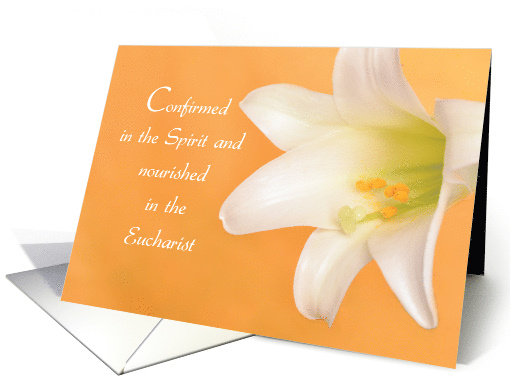 | Artist Notes: | A beautiful large white lily graces the front of the congratulations card with a golden yellow background. A true celebration as an adult receives the two sacraments of initiation in the Catholic church after completing their RCIA program. |