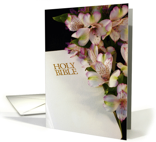 | Artist Notes: | RCIA - Rite of Christian Initiation for Adults congratulation greeting card, with image of a white bible and Peruvian Lilies. Inner verse is customizable at time of purchase. Image copyright Sheryl Kasper. Thank you. |