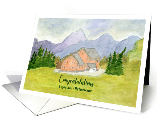 Congratulations Retirement Chalet Mountains Landscape Art Watercolor
