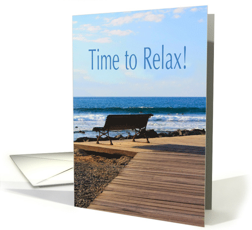 Time to Relax Retirement Congratulations. After years of hard working, busy scedules and stress it's finally time to relax. Imagine sitting there on that bench by the sea and just do ... nothing! Created by Studio Porto Sabbia This card can also be used as a retirement party invitation. Just add some information to the inside.