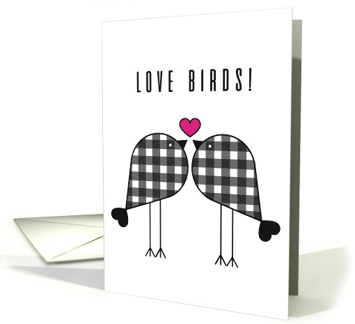 Wedding congratulations for the Love Birds. It's black and white, it's pure love! Adorable and sweet stylized checkered love birds. Heart to heart! Heartfelt recognition of a bride and groom special day & special vows. Unique clever, light hearted! Love hearts to heart love for a cute marriage couple! Cute, Clever, Contemporary.