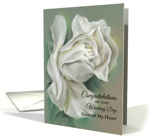 Easily personalize this lovely congratulatory card for a special person who has been like a sister, or a sibling of the heart rather than by blood, on their wedding day. The design features artwork in soft pastel depicting a single white rose just beginning to bloom. White roses are a symbol of unity and new love.