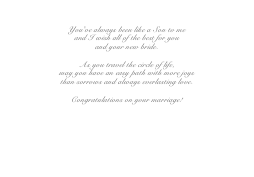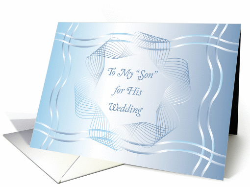 If you know a young man who is like a son and has an upcoming wedding, then this is the perfect card. The cover is in soft shades of blue and white, and has a stylized circle where the blue headline is. Light blue and white ribbons tie the design together. The inside message may be changed to fit your needs. ©Gail Pepin