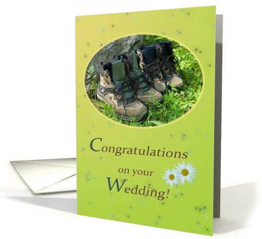 | Title: | Hiking shoes and daisies in sunny green - Wedding Congrats Hiking |