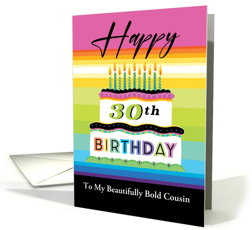30th Birthday Cousin Typography Cake And Rainbow Stripes