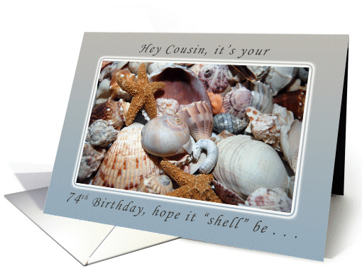 A collection of beautiful sea shells and starfish make for a beautiful birthday card that your Cousin is sure to enjoy on her 74th Birthday.
