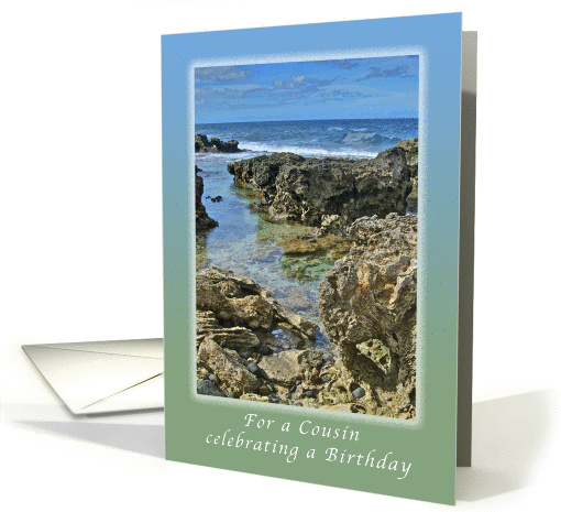 An ocean view of the Hawaiian coastline off the island of Oahu.A beautiful card a cousin is sure to enjoy.