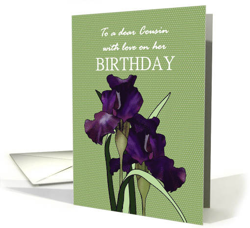 Birthday for Female Cousin Pretty Irises Green Checkered Background